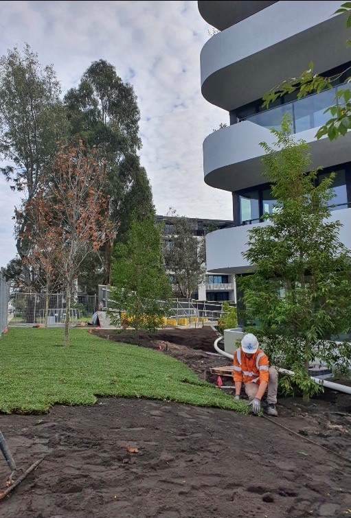 Mirvac Construction has awarded Landscape Plus a $1.25 million contract to landscape the Folia apartments in Doncaster. The package includes concrete walls and paths to the steep site on Doncaster Road. Landscape Plus will build a carpark and realign the roadway along Stables Road, as well as providing planting to planter boxes across the six levels of apartments. Our focus on being the one stop shop contractor for all external works has worked in our favour on this project.